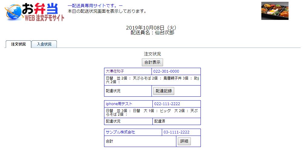 また、配送済みにすることで現在車両に残っている弁当残数を把握することも可能となります。