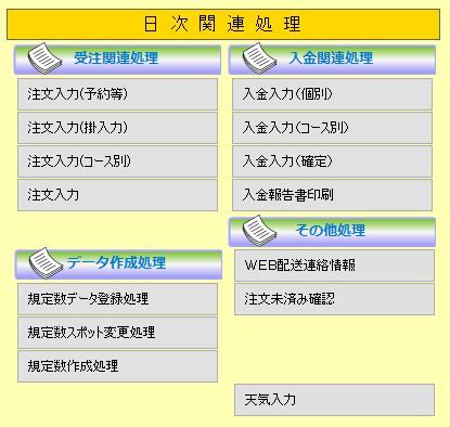 受注は、CTI(別画面)、注文入力。掛け入力、コース別入力の4つから行えます。