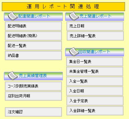 ナレッジシステムの配達関連レポートでは配送に関するレポートを出力します。
