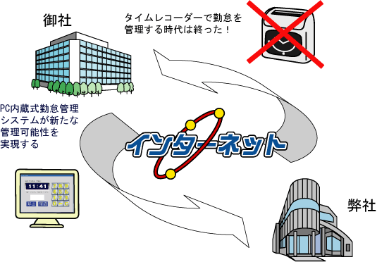Bインターネットの回線を通して就業データを自動的に弊社まで転送。