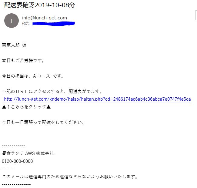 本社より、当日の朝、各配送員に当日のみアクセスできるサイトを配送員ごとにお知らせします。