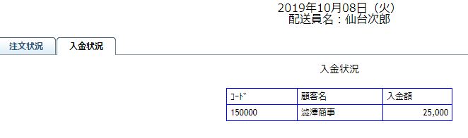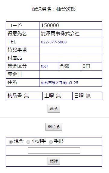 配送表の顧客名をクリックしますと、顧客毎の住所等固有の情報が表示されます。サイト内にある「入金入力」のボタンをクリックしますと、入金の入力が可能となります。